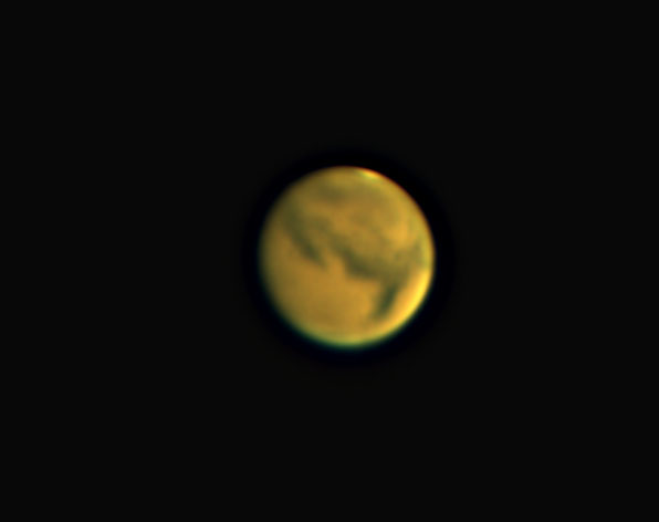 9月9日。子午線の湾(アリンの爪)が正面に,極冠も輝いて火星らしい像です。