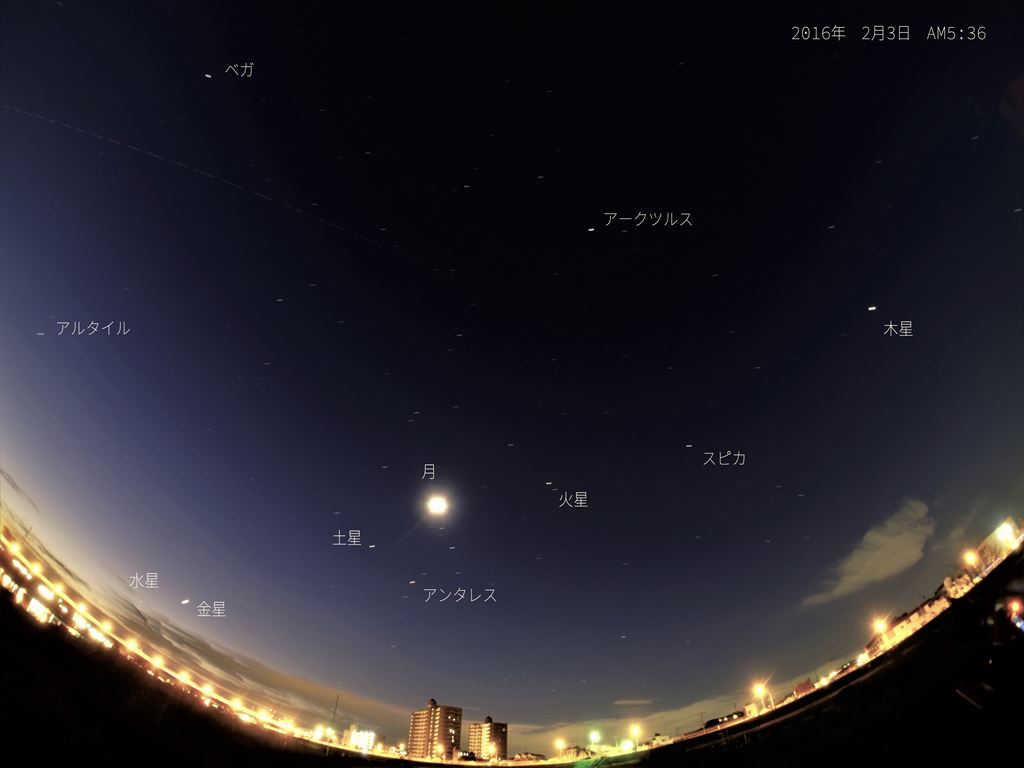 4つの惑星と月 2016年2月5日 05:42 FujifilmX-A1 18mmf3.2