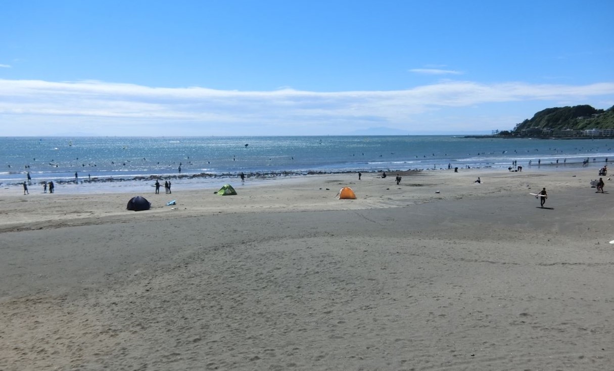 久しぶりにおとずれた由比ヶ浜は,こんなに広い遠浅の海岸も改めて珍しいなと思いました。砂に潜っていく貝の様子なども観察したり発見も多く,コロナで海の家がないので景色が良いことに気づきました。所々江ノ電に乗りながら,歩く距離も適度で半分くらいは旅行気分でとても気持ちが良かったです。教員免許講習は2年後に廃止になるのですが,運悪く来年までに更新に当たる私は,あと3単位習得せねばならず,来年もこのような野外巡検で楽しく済まぜたいと思いました。
