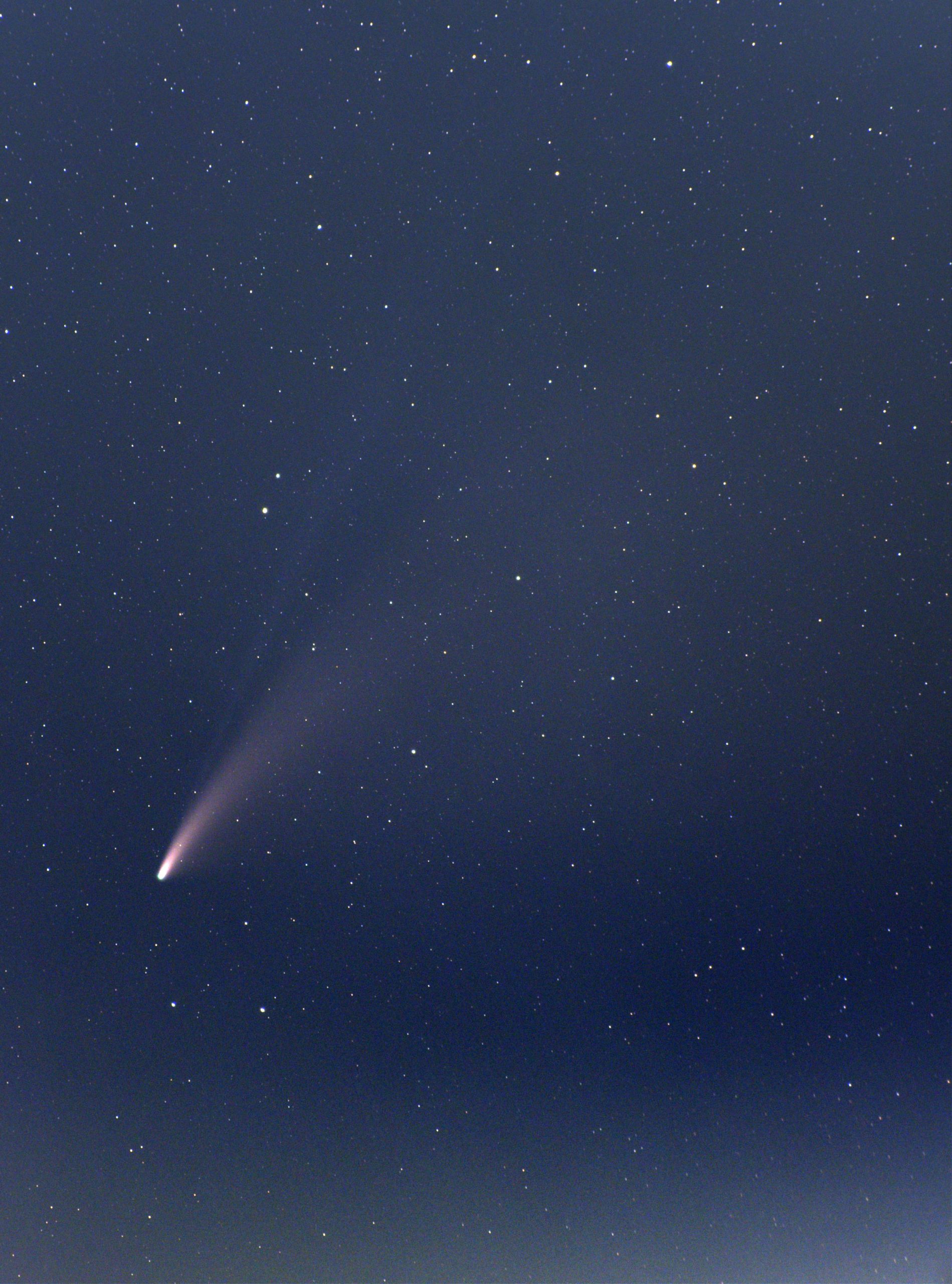 2020年7月,10数年ぶり?に肉眼でも見られる彗星(ほうき星)が現われました。ところが日本は梅雨のまっただ中。雲の隙間から撮った写真などがちらほら見られる中,7月19日にやっと晴れ間が確実になり,折しも日曜日でしたのでスパコンの予測をもとに,茨城の太平洋岸(鹿島灘海浜公園)へ遠征して撮影できました。