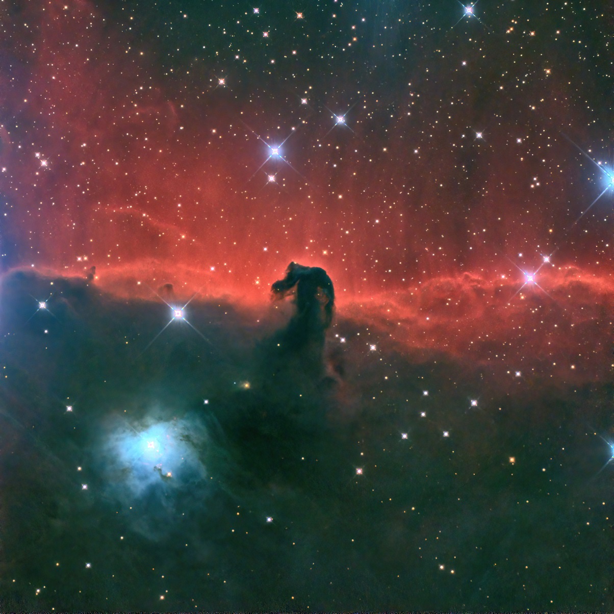 中高時代(70年代)の天体写真といえば,パロマ山天文台で撮影された,アンドロメダやプレアデス,そしてこの馬頭星雲が,どうしても印象に強く残っています。その同じイメージが自分でも撮れると知ったのはつい5年ほど前(下4つ目の写真:2016年)ということになります。今年(2022年)導入した20㎝反射とDeconvoluritionをかけて画像処理したものがこれです。ハッブル宇宙望遠鏡(HST)の赤外線写真では馬の頭も光っているみたいですが,このイメージはかつてのパロマ山天文台の写真に近く,なんだか懐かしい気がします。