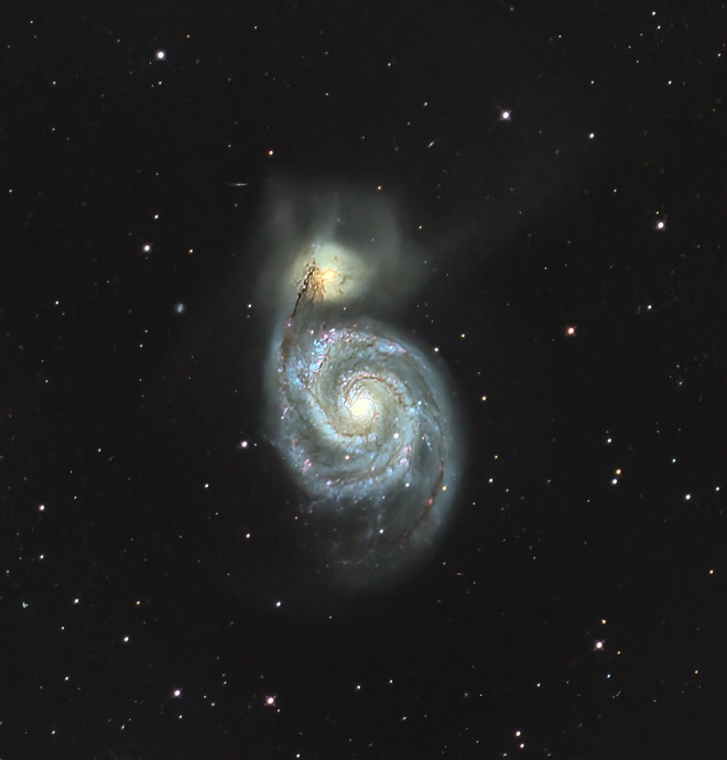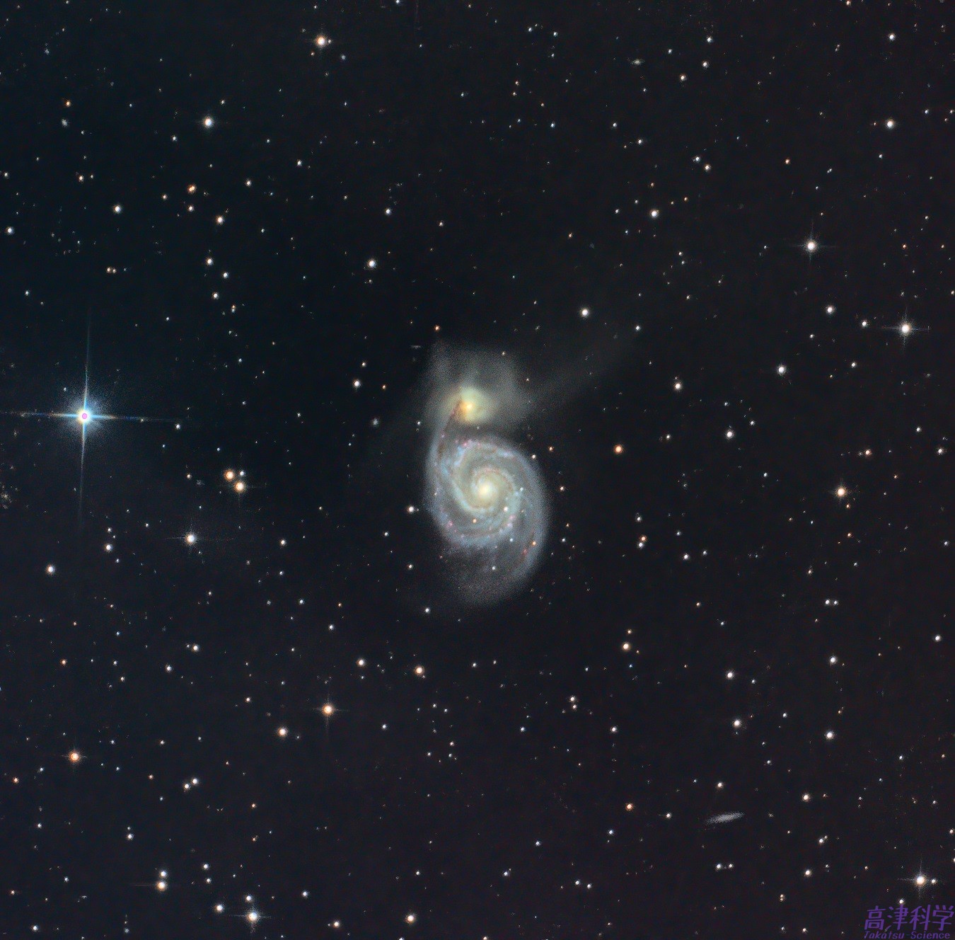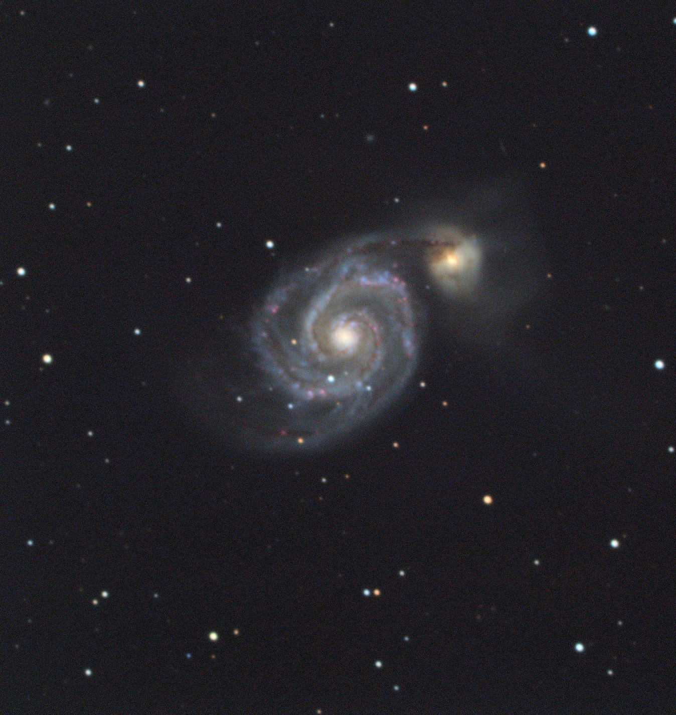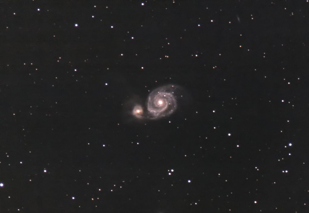 子持ち銀河と言われるように、二つの銀河からなるおおぐま座のM51。渦巻の様子が分かるように撮ることができました。