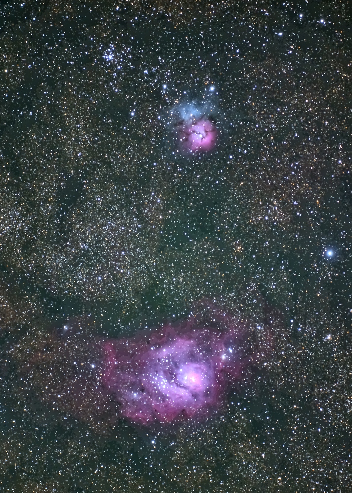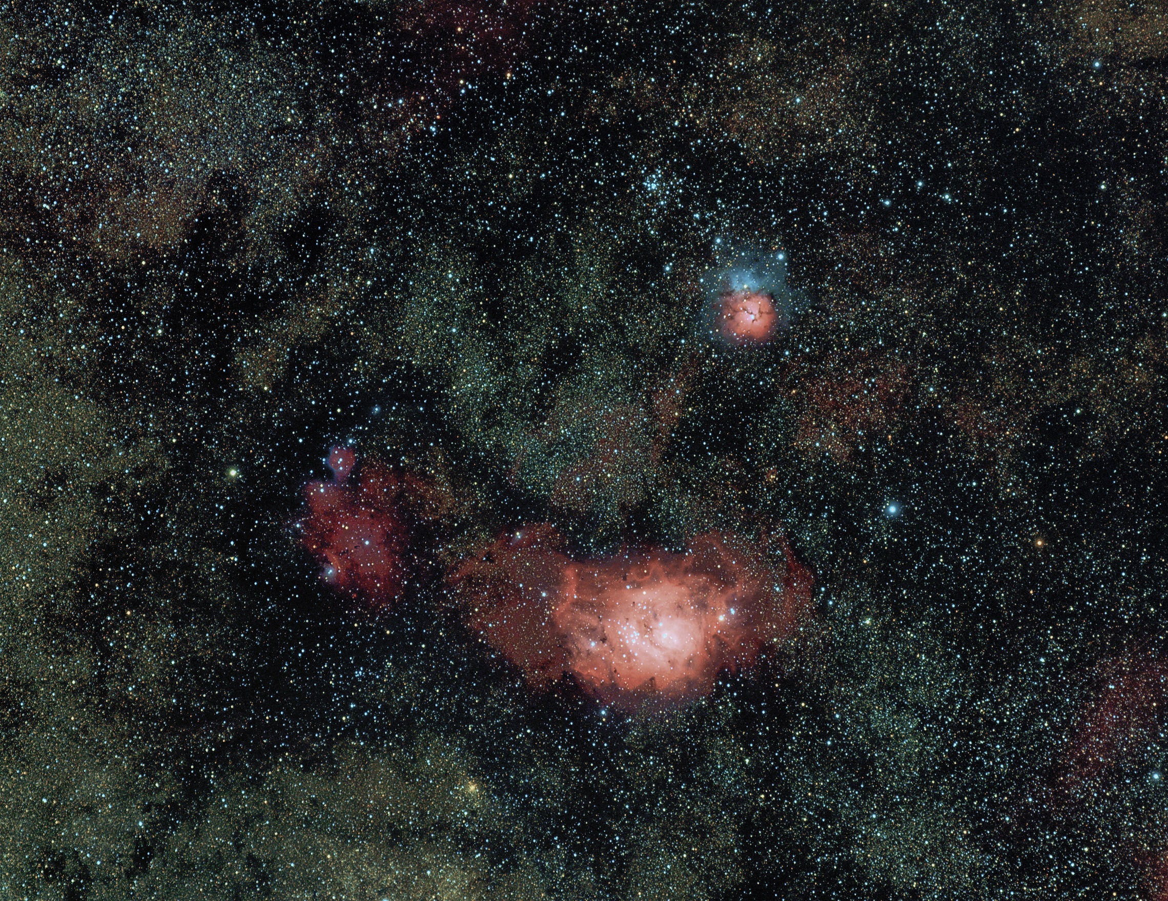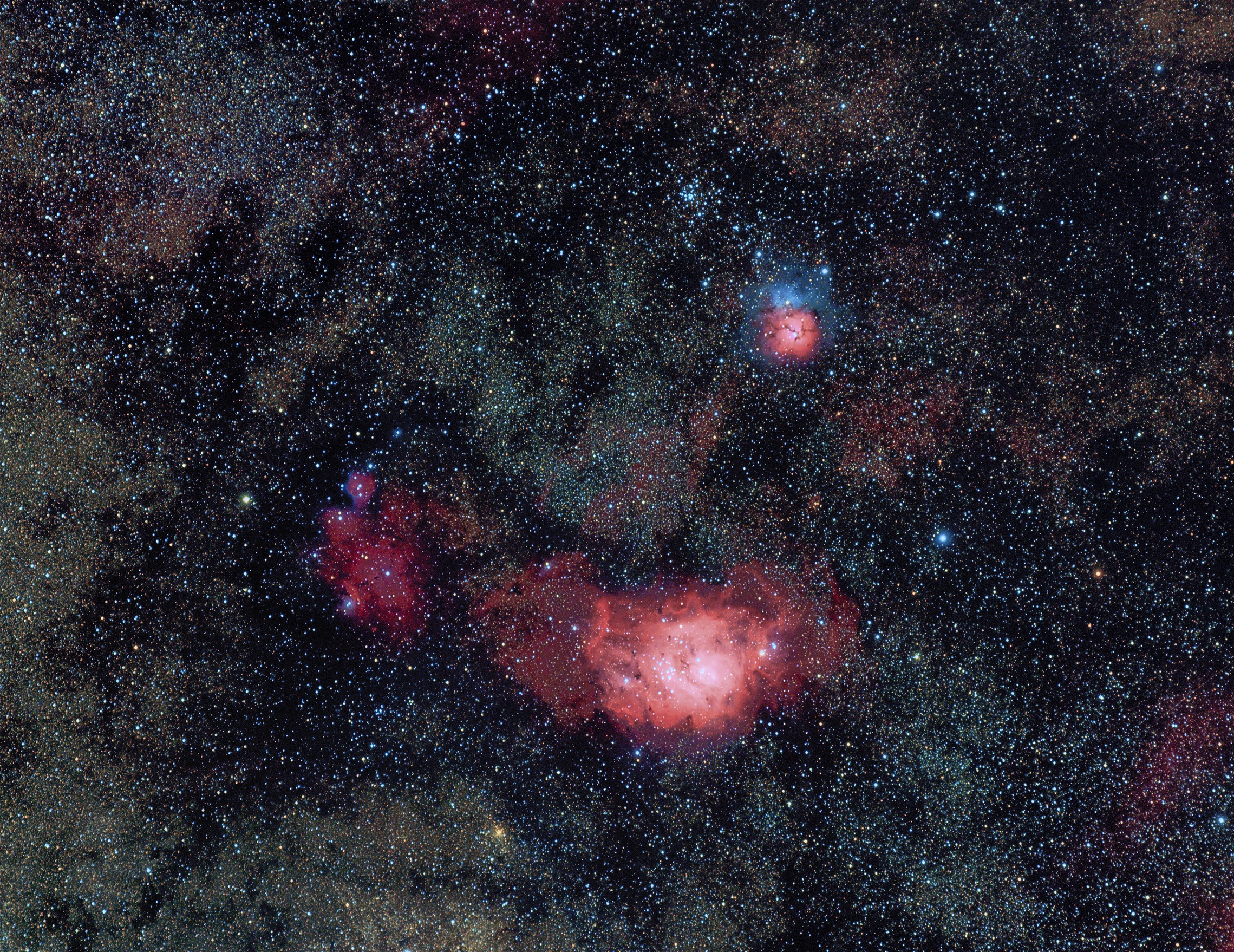 45分の露出では少ないので,M8の西側に広がっている通称(猫の手?)星雲があまり出ません。そこで,画像処理でさらにストレッチをしてみました。