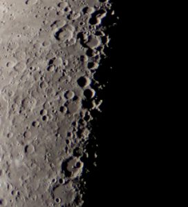 上弦の頃,クレーターの嶺が重なってXの形に光って見える現象です。