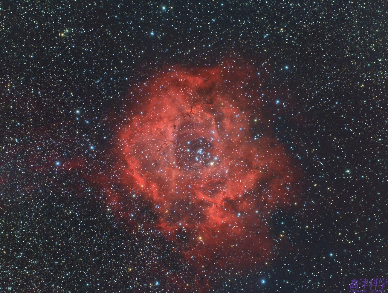 赤い散光星雲の代表的な天体ですが,肉眼ではほとんど見えません。写真ではよく写るので今まで何度も撮影していますが,デジカメではそれなりに露出をかけないと淡い写りだと思っていました。ところが冷却CMOSカメラにしたとたんこんなに濃く色が出るとは思わず,それも変かなと思って,調整をしているところです(2020年12月記)。