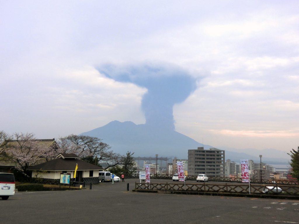 ホテルへ戻って、車でまず南洲墓地へと駐車場に着くと、なんと桜島が噴火。むろんたびたび噴火するとは聞いていましたが、このような噴煙を見たのはやはり初めてで、驚きました。鹿児島はすごいとあらためて感じました。