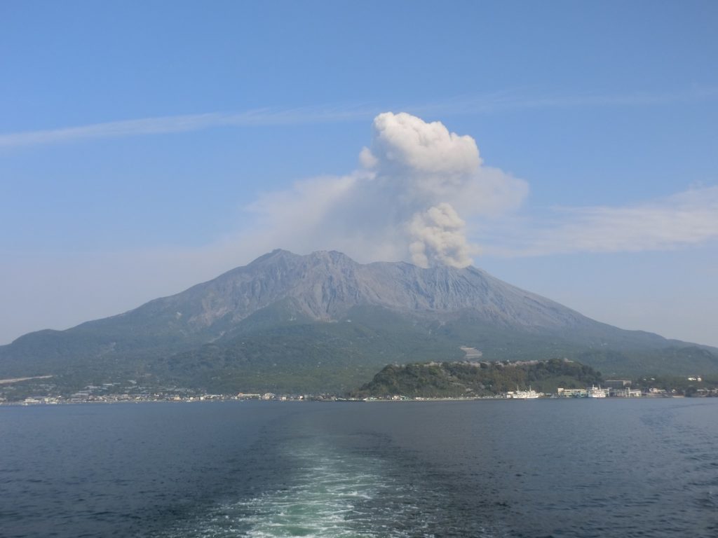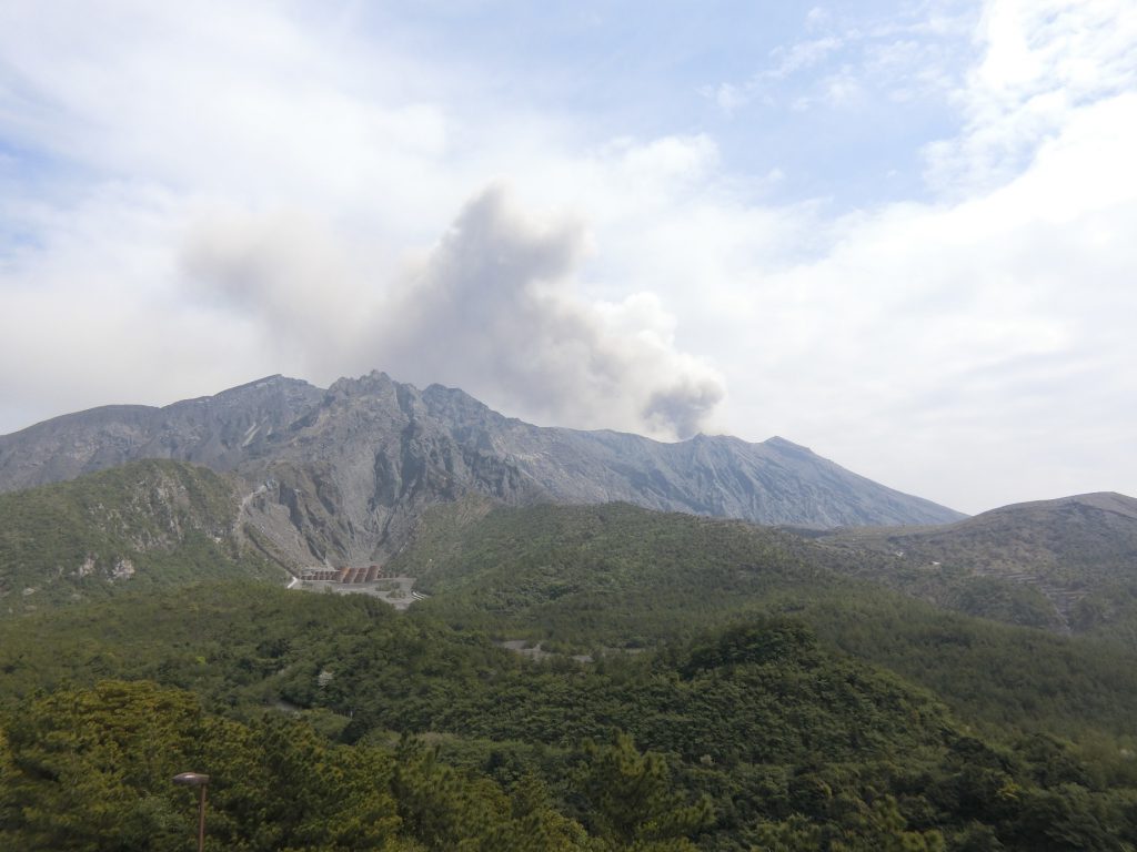 フェリーで桜島にわたり、時計回りに一周しました。フェリーは15分ごとにあり、料金は千数百円と生活要路という感じ。まず、湯の平展望所へ。北岳、南岳があり噴火口は南岳であることを知りました。