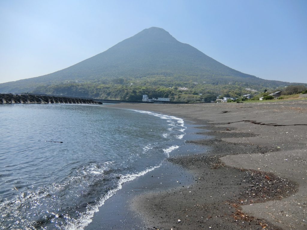 3日目は知覧の武家屋敷、特攻平和会館、池田湖、開聞岳、砂蒸し温泉。などを回りました。途中、築地書館発行のフィールドガイド日本の火山⑤九州の火山を参考に池田湖周辺の露頭を探しましたが、1999年発行のものですから、ほとんど見つけられませんでした。この川尻海岸の砂のことは書いてありませんが、最後に立ち寄った石牟礼川遺跡考古博物館(自遊館coccoはしむれ)のホームページに解説があります。