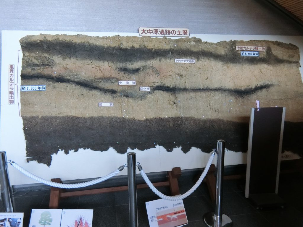レンタカーを借りるときに、霧島の方はどの程度入れるか、通行規制などを聞いたのですが要領を得ないので、上野原遺跡の鹿児島県埋蔵文化センターへ。月曜日で展示館は休みでしたが埋蔵文化センターでは職員が対応してくれました。地層の剥ぎ取り標本がたくさんあって目的はほぼ達成できました。