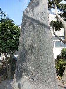 東桜島小学校校庭にある「桜島爆発記念碑」。科学不信の碑として貴重と言われています。碑文をウィキペディアから引用します。